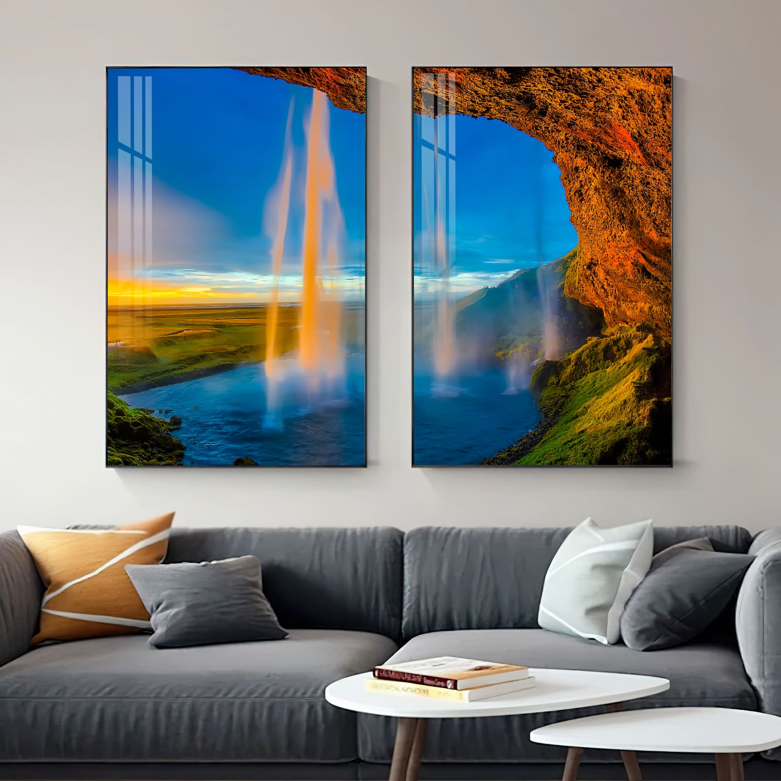 Cascata de Àgua Vista de Dentro de uma Gruta