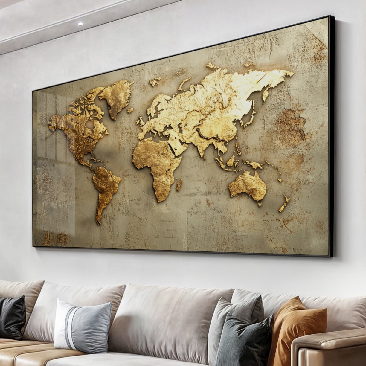 Se você vai colocar em cima de um sofá ou de um aparador, você deve optar ou por um quadro na horizontal ou um kit de 2 ou 3 quadros, pois eles devem seguir a proporção móvel que vai embaixo.