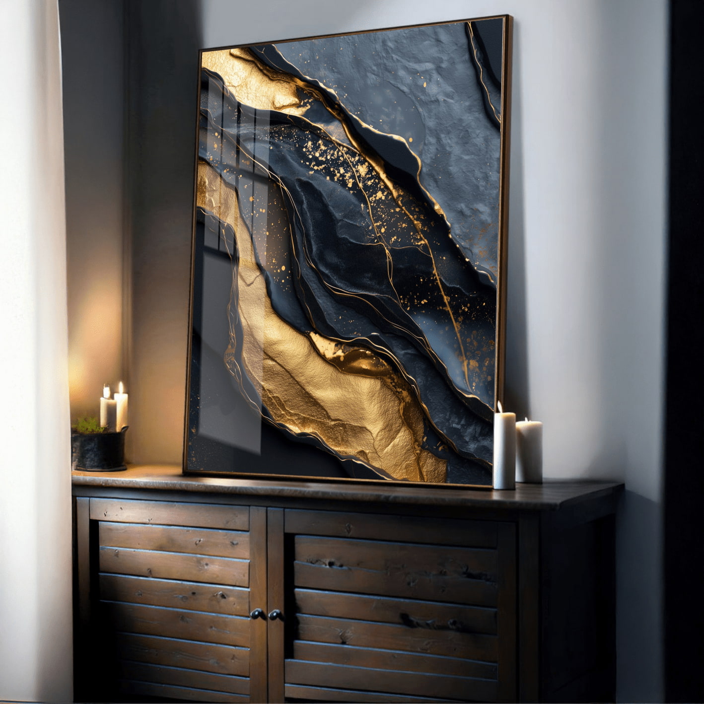 Quadro Marmore Abstrato Preto e Dourado